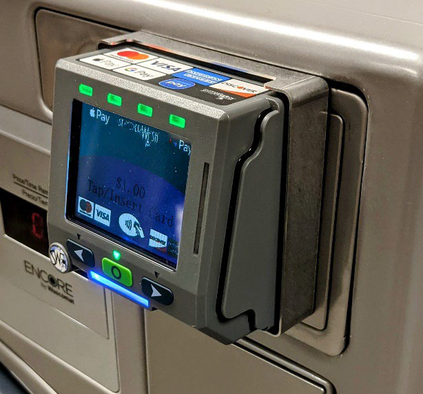 The EMV Impact Shield is a durable protective covering designed to endure the demanding conditions of a laundromat. It is made from impact-resistant stainless steel and fits directly over an existing EMV Card Reader without requiring the reader to be removed. If your EMV Reader has physical damage to the back or sides of its housing, the EMV Impact Shield can help secure those areas.